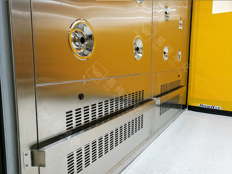 汽車零部件生產(chǎn)車間PVC快速卷簾門貨淋室-三側(cè)吹風(fēng)